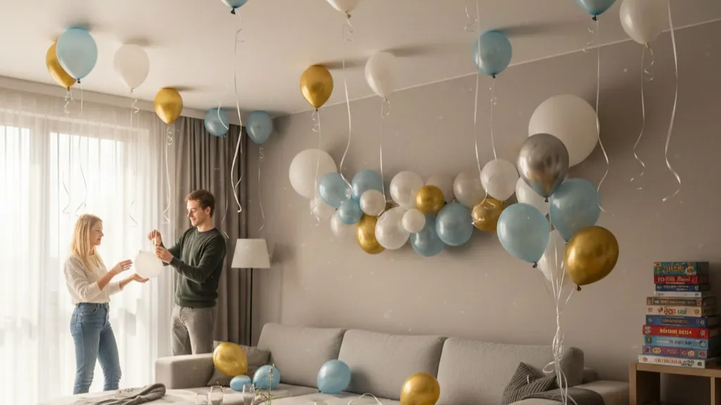 Шары могут быть красивыми, но дешевый крепеж испортит все: гирлянда поползет, лента перекрутится, клейкие точки отвалятся на полпути. В итоге вы тратите время на переделки, а не на праздник. Лучше экономить на количестве, чем на основе. Проверьте, к чему вы крепите декор: краска, обои, плитка и стекло держат по-разному. И держите запас под рукой: один сорвавшийся элемент обычно тянет за собой половину конструкции.