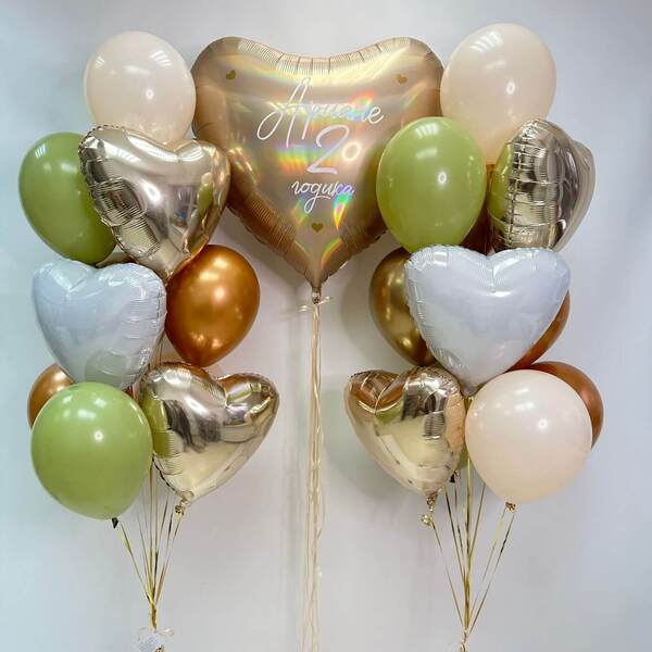 Шар фольгированное сердце, шампань, 46 см — 4 шт