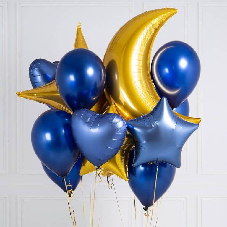 Сатин синяя лазурь фольгированная звезда 46 см — 1 шт