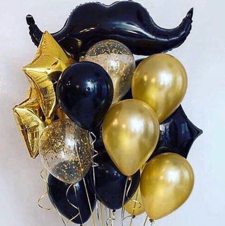 Набор шаров золотые и черные с усами
