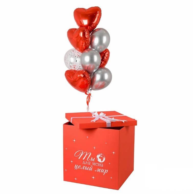 Коробка с шарами красные сердца «Целый мир»