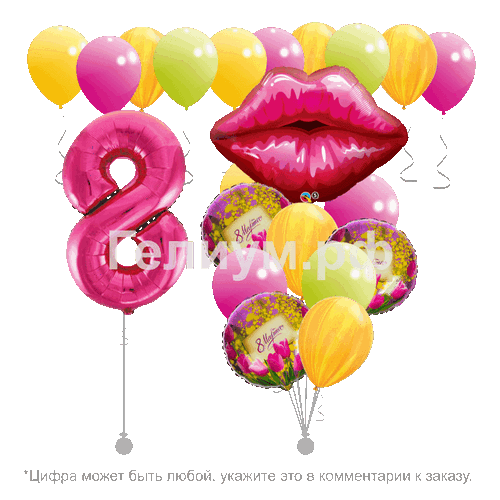 Набор гелиевых шаров на 8 марта «Поцелуй»