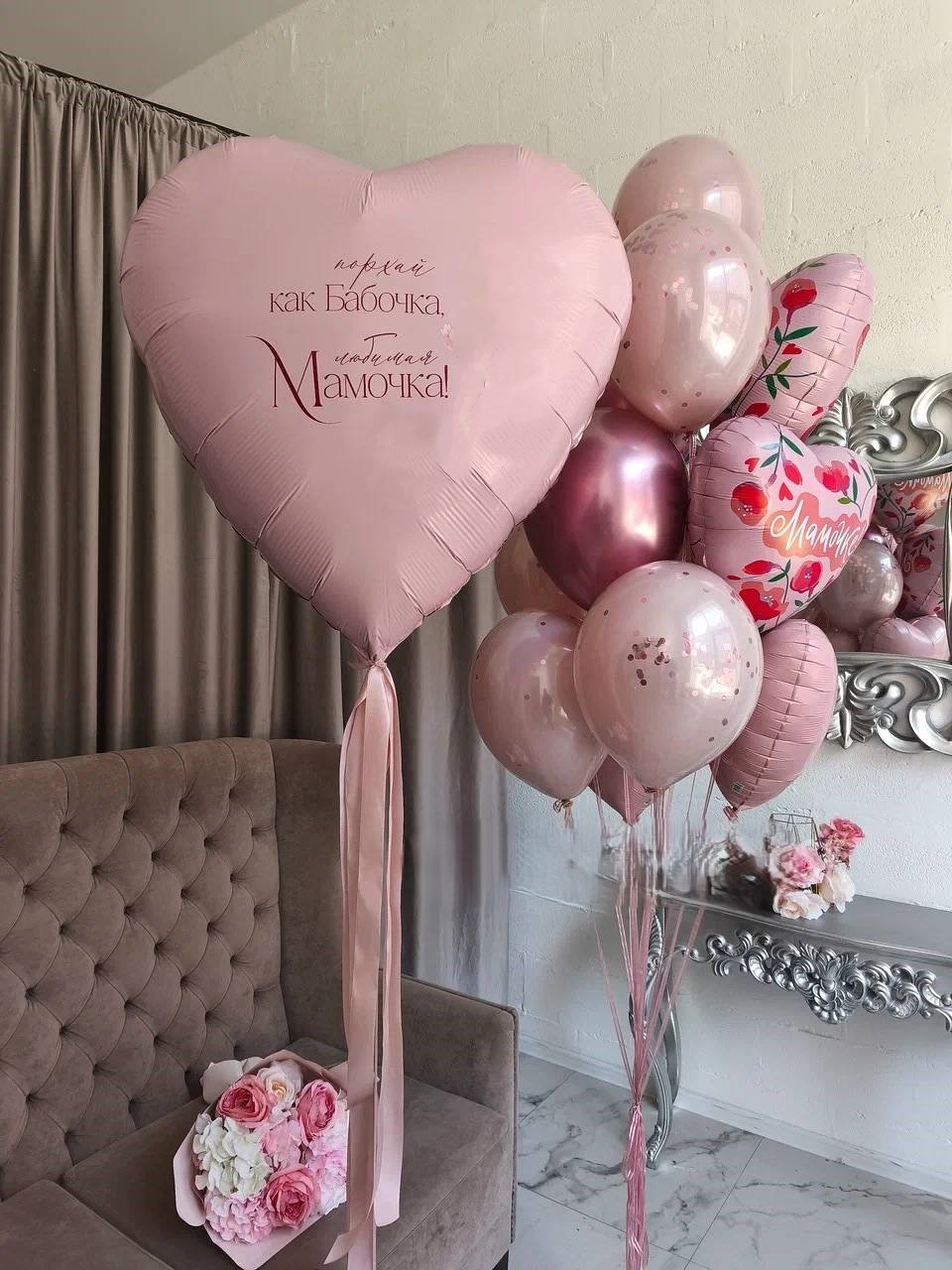 Шар фольгированное сердце, пыльная роза, 91 см — 1 шт