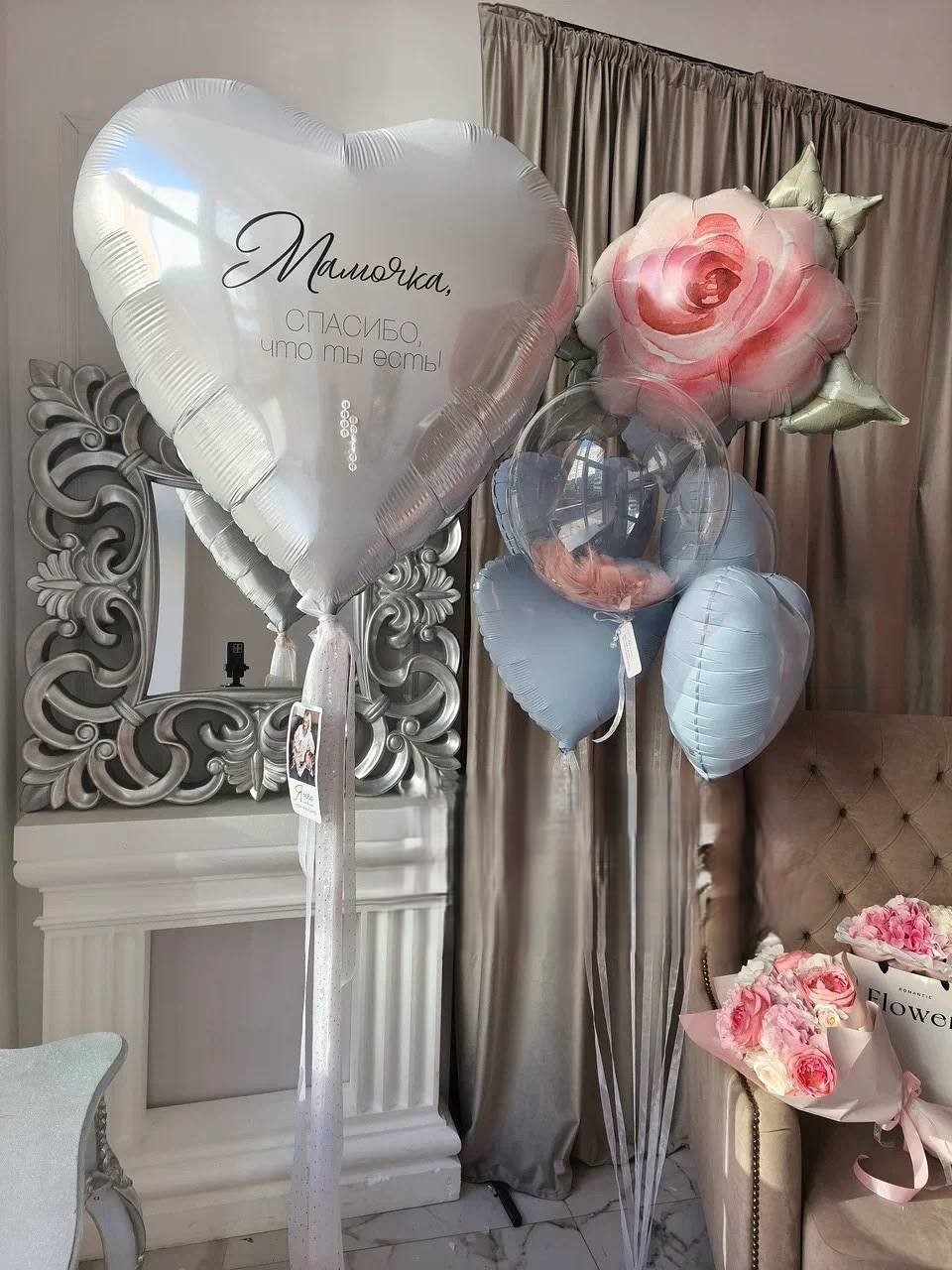 Шар (32»/81 см) Цветок, Акварельная роза, Розовый — 1 шт
