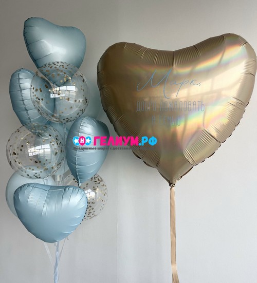 Сатин голубое фольгированное сердце 46 см — 4 шт