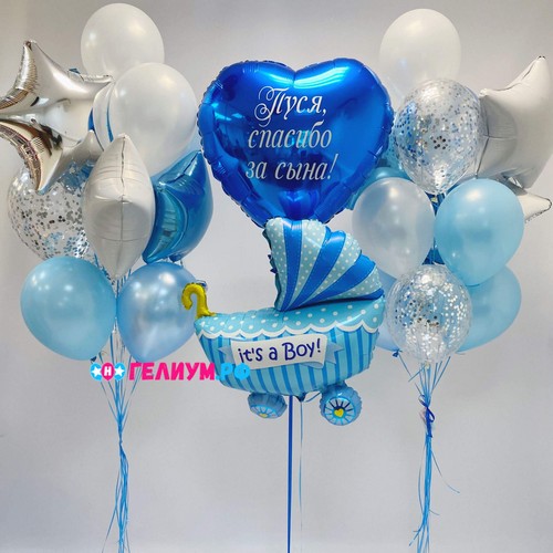 Шар (35»/89 см) Фигура, Коляска для мальчика, Голубой — 1 шт