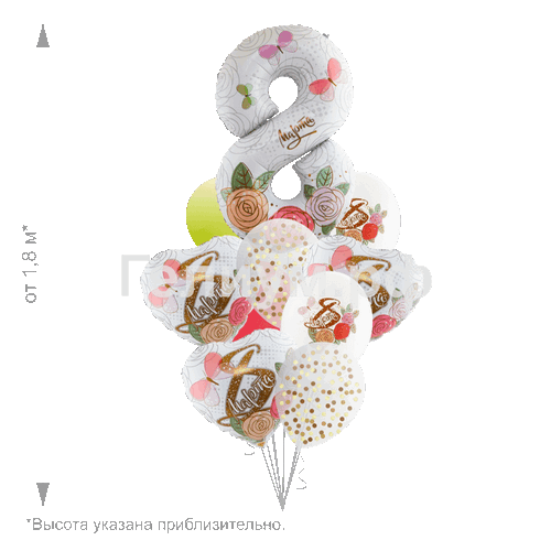 Сердце 46 см, «8 марта (розы)» — 3 шт