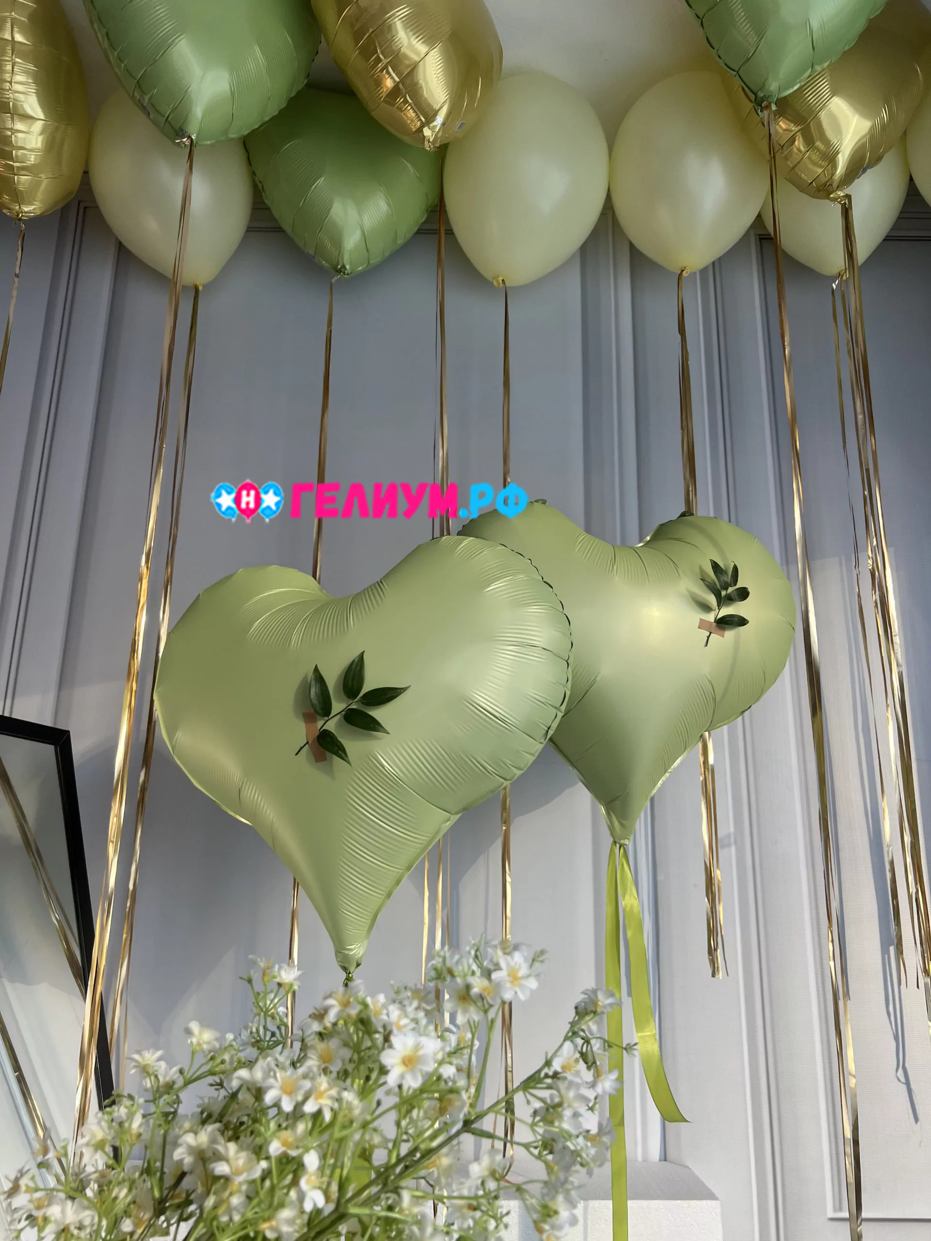 Фольгированный шар сердце 46см, Фисташка сатин — 3 шт