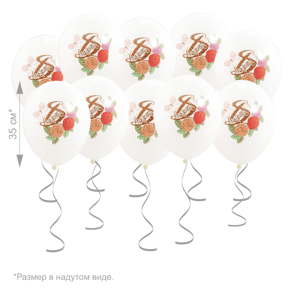 Шары под потолок 8 марта белые 15 шт