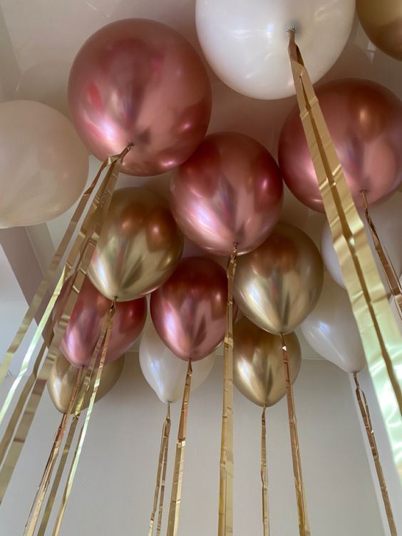 Шары под потолок хром розовые,золотые,бежевые 15 штук