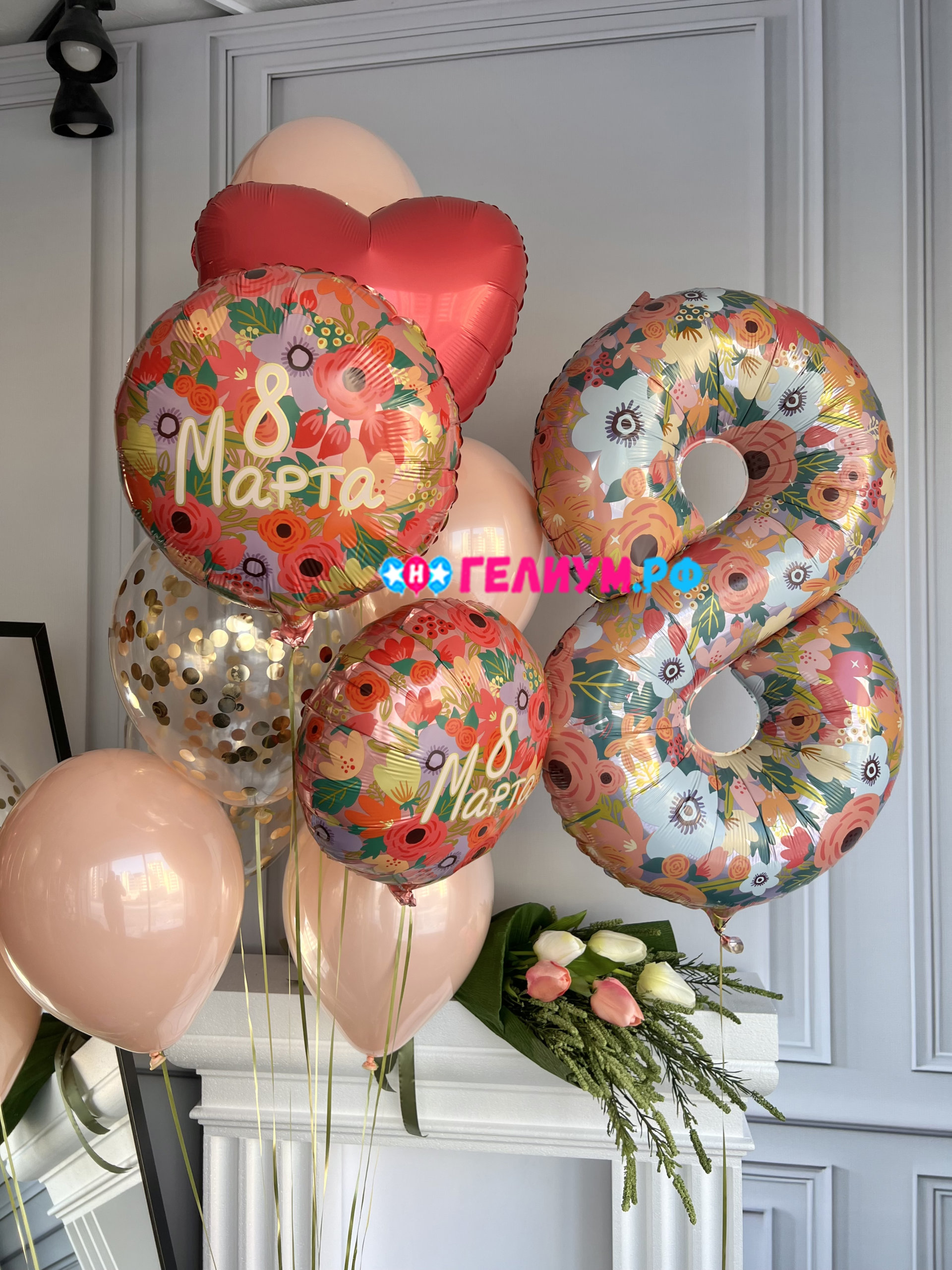 Фольгированный шар круг с рисунком, 46 см, 8 марта (Falali) — 2 шт