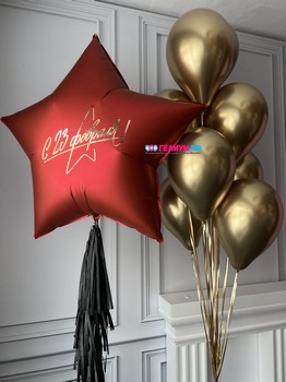 Шары золотые на 23 февраля с большой звездой