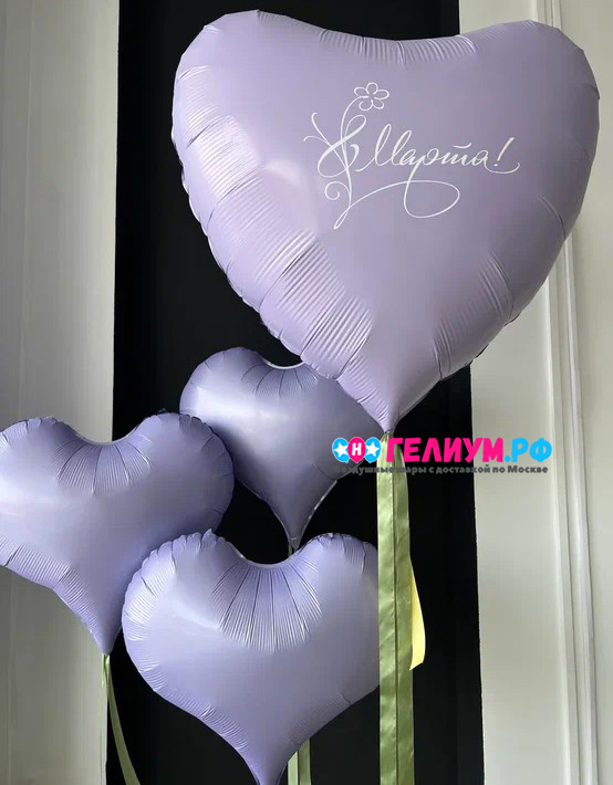 Фольгированный шар сердце, 61 см, Люкс сиреневый — 3 шт