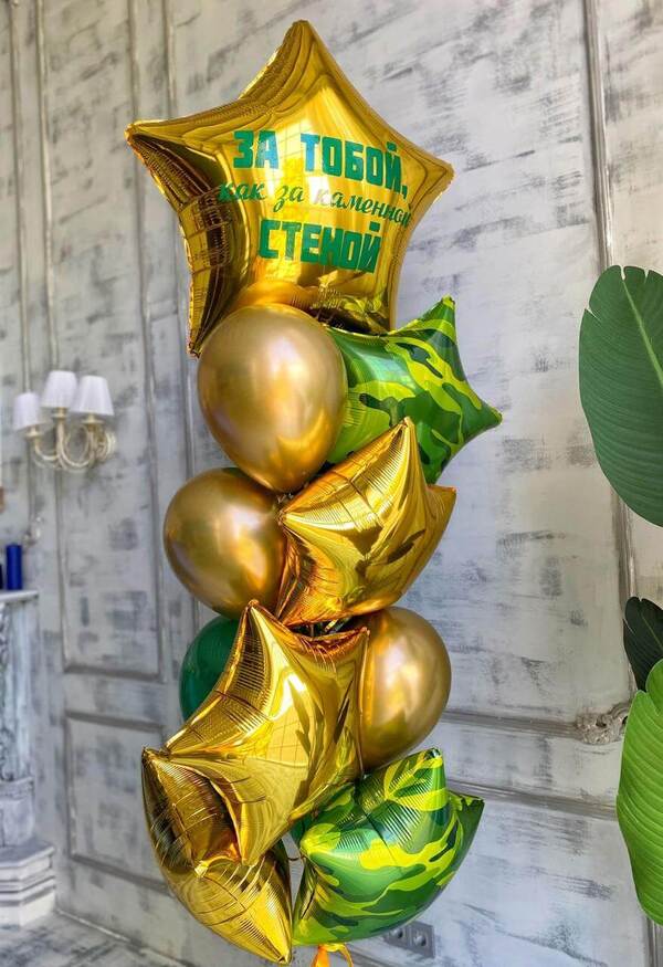 Фольгированная звезда 46 см, Камуфляж, зелёная — 2 шт