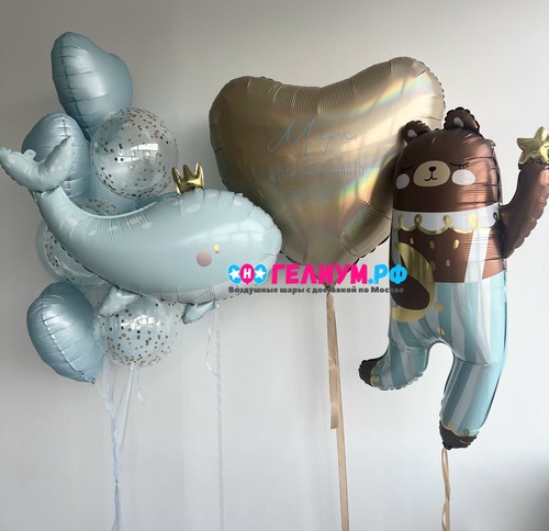 Воздушные шары с гелием голубые с китом
